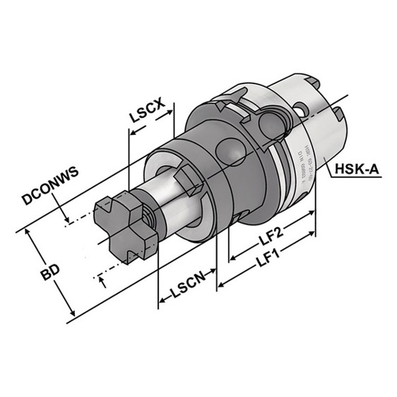 Produktinformationen "Kombiaufsteckfräsdorn ISO 12164 A – Spann D.16mm HSK-A100 – Länge 60mm – KEMMLER"